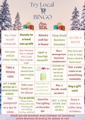 TRY LOCAL BINGO will run from November 25th through December 19th. Winners will be announced on December 23rd!